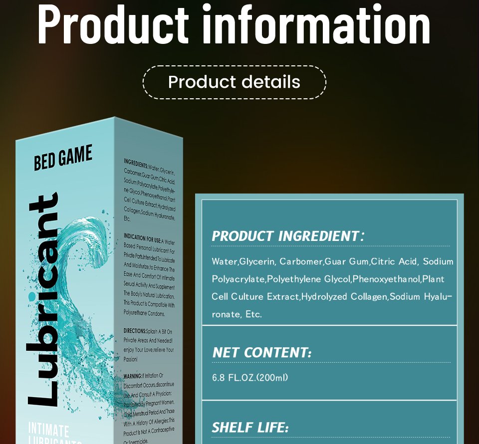 BED GAME brand offers a variety of body lubricants, including water-based formulas that are long-lasting, vagina-friendly, and compatible with condoms. Features include natural formulas, free from silicone oil, hormones, and alcohol. Some products contain a refreshing peppermint formula for a cooling sensation. The volume is 3.4 fl. oz. (100 ml), with a shelf life of up to three years, easy to clean, and has a soft, fresh, and non-greasy texture.